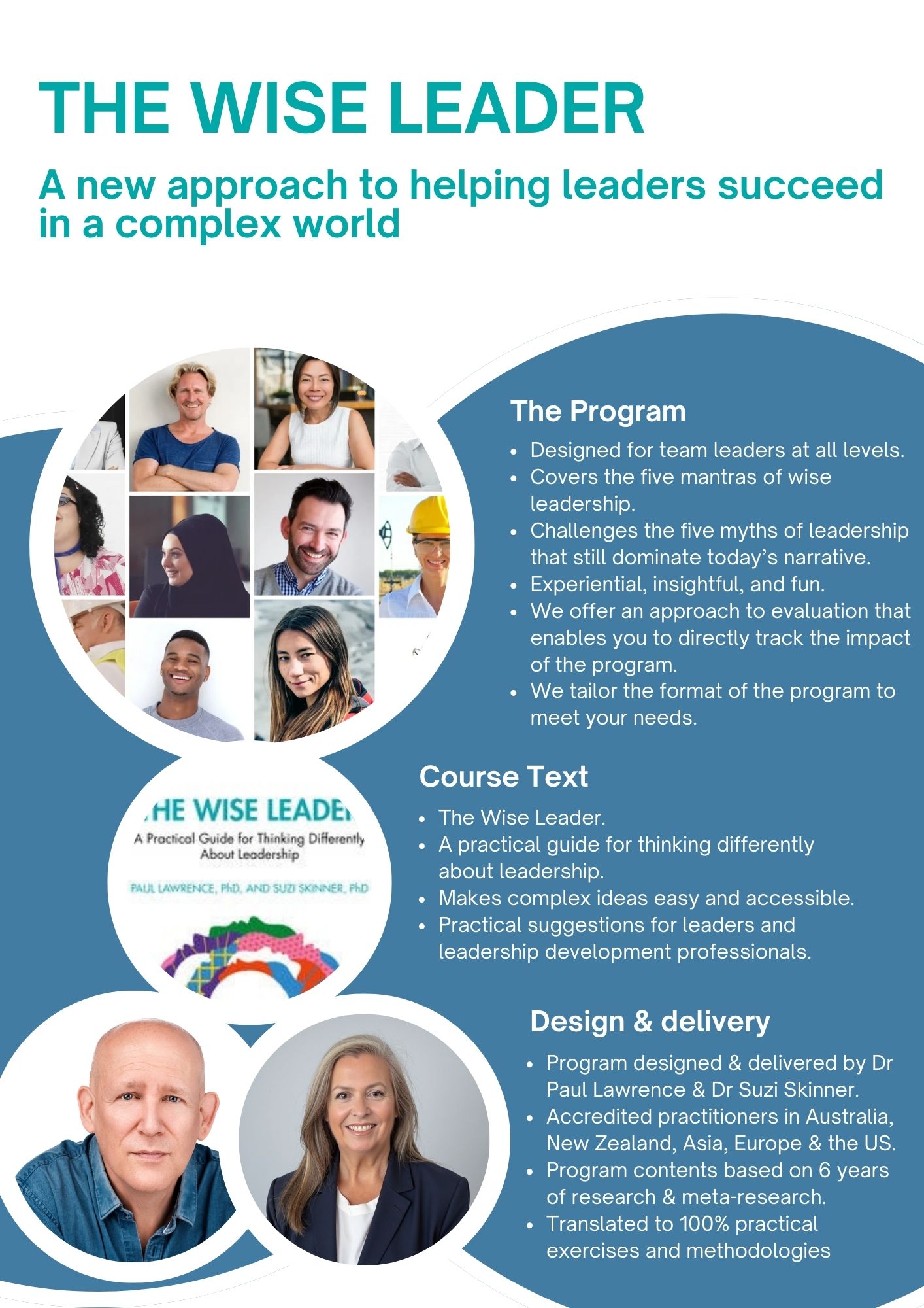 By the end of a Wise Leader program your leaders will have transformed the way they view leadership and will emerge newly confident and capable of leading successfully through change and complexity. The content of our programs is based on the book The Wise Leader.